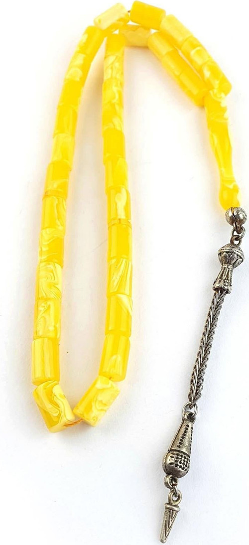 Süt kehribar Çelik Püsküllü Kesme Tesbih