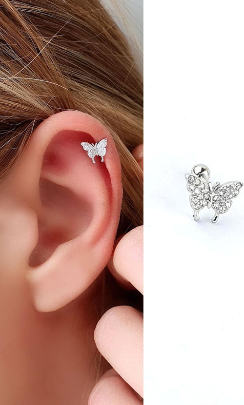 Zirkon Taş Detaylı Kelebek Figürlü 925 ayar Gümüş Tragus Helix Kikirdak piercing