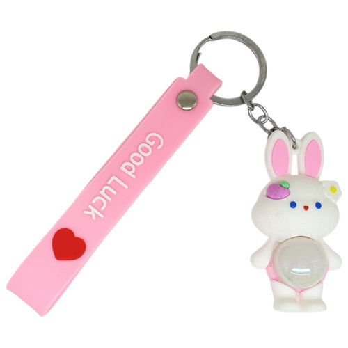 Figürlü ve Işıklı Silikon Anahtarlık - Tavşan - Pembe