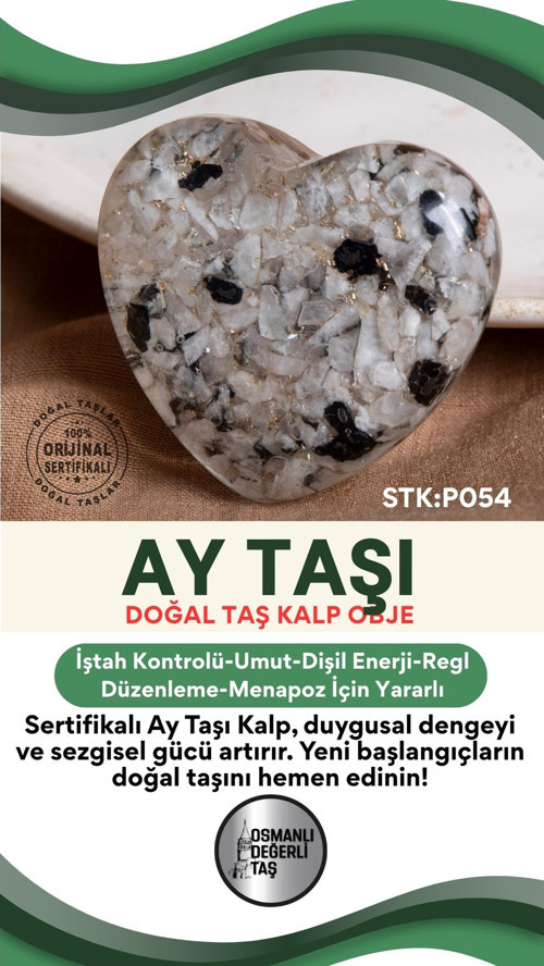 Osmanlı Değerli Taş Sertifikalı Ay Taşı Doğal Taş Kalp Obje P054