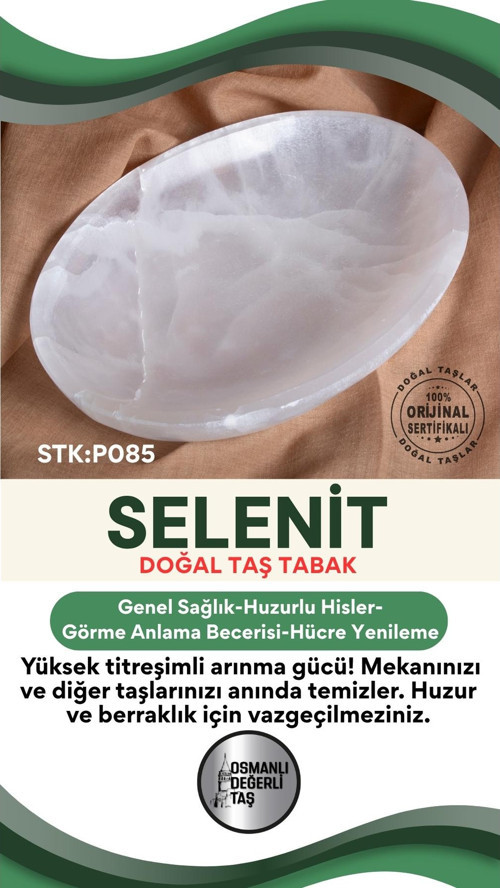 Osmanlı Değerli Taş Sertifikalı Selenit Doğal Taş Elips Tabak No:7 P085
