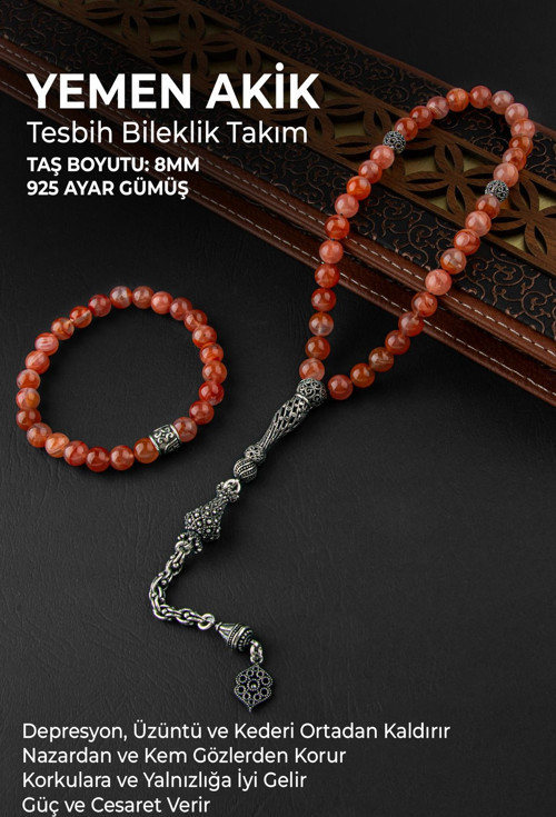 * Sertifikalı Yemen Akik Doğal Taş 33'lük Gümüş Tesbih ve Bileklik Takımı, sadece bir aksesuar değil, aynı zamanda yaşamınıza değer katacak bir yatırımdır.