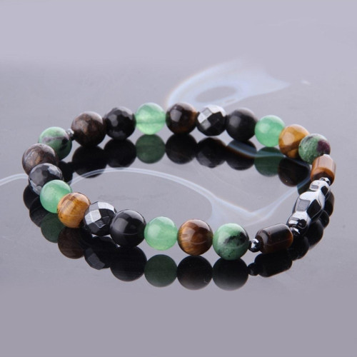 Doğal taşların enerjisini taşıyan bu bileklik, çok renkli tasarımıyla dikkat çeker.
