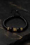 Bu bileklik, siyah mat taşlarla süslenmiş olup, altın detaylarla zenginleştirilmiştir.