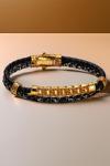 Osmanlı Gümüş markasının zarif tasarımı, altın zincir detaylarıyla dikkat çeken bu siyah deri erkek bileklik, şıklığı ve modernliği bir araya getiriyor.