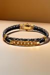 Osmanlı Gümüş Altın Zincir Detaylı Siyah Deri Erkek Bileklik – Çift Örgü Tasarım