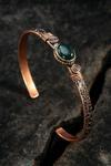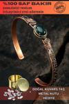 Osmanlı Gümüş Bakır Kelepçe Bilezik Yeşil Akik Doğal Taş Erkek Kadın Kuvars Taşı Ve Metal Kutulu