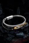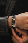 Doğal Oniks Taşlı Deri Çelik 3 lü Erkek Bileklik Altın Kaplama Renk Çapa Motifli