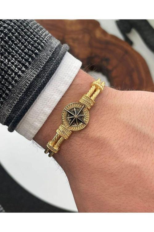 Erkek Bileklik - Metal Erkek Bileklik - Altın Kaplama Erkek Bileklik - Pusula Model