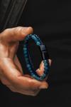 Damarlı mavi akik taşı boncukları, bilekliğe eşsiz bir görünüm kazandırıyor.