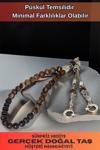 Osmanlı Gümüş Erkek Doğal Taş Tespih - Doğal Kahverengi Akik Taşlı Ortaboy Tesbih