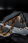 Osmanlı Gümüş Erkek Doğal Taş Tespih - Doğal Kedigözü Taşlı Ortaboy Tesbih