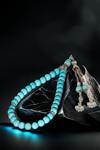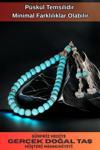 Osmanlı Gümüş Erkek Doğal Taş Tespih - Doğal Turkuaz Taşlı Ortaboy Tesbih