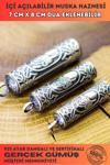 Erkek Cevşen Muska Haznesi - Tuğralı Silindir Yuvarlak Gümüş Muska Cevşen Haznesi