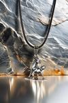 Osmanlı Gümüş Erkek Gümüş Kolye Ucu - At Figürlü Oksitli Model Deri Kolyeli 925 Ayar Gümüş