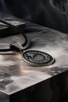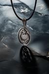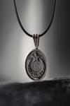 Osmanlı Gümüş Erkek Gümüş Kolye Ucu - Ay Yıldız Türk Bayrağı Oksitli Sarmaşık Model Deri Kolyeli 925 Ayar Gümüş