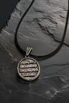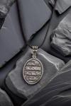 Osmanlı Gümüş Erkek Gümüş Kolye Ucu - Ayetel Kürsi Yazılı Oksitli Oval Model Deri Kolyeli 925 Ayar Gümüş