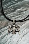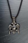 Osmanlı Gümüş Erkek Gümüş Kolye Ucu - Çift Başlı Selçuklu Kartalı Oksitli Model Deri Kolyeli 925 Ayar Gümüş