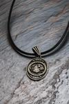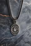 Osmanlı Gümüş Erkek Gümüş Kolye Ucu - Tuğra Motifli Oksitli Oval Model Deri Kolyeli 925 Ayar Gümüş