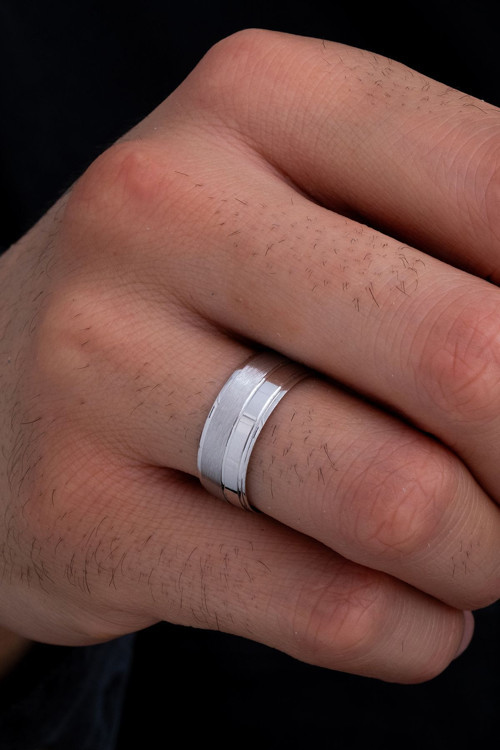 Erkek Gümüş Yüzük - 925 Ayar Sade Gümüş Alyans Yüzük