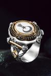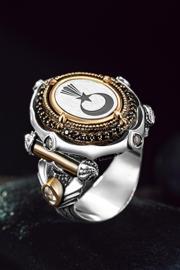 Osmanlı Gümüş Erkek Gümüş Yüzük - Ay Yıldız İşlemeli Zirkon Taşlı 925 Ayar Erkek Yüzük