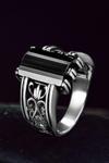 Erkek Gümüş Yüzük - Siyah Oniks Taşlı Oval Model Erkek Yüzük
