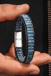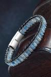 Osmanlı Gümüş Erkek Kadın Mavi Hematit Taşı Deri Kordon Doğal Taş Bileklik