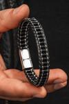 Osmanlı Gümüş Erkek Kadın Siyah Hematit Taşı Deri Kordon Doğal Taş Bileklik