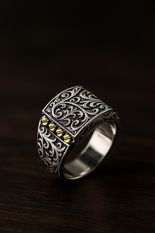 Osmanlı Gümüş Erkek Kalem İşçiliği Erzurum El İşi 925 Ayar Gümüş Yüzük