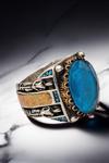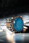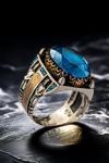 Osmanlı Gümüş Erkek Mavi Zirkon Taşlı Gümüş Yüzük