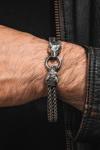 Osmanlı Gümüş Jaguar Claw 316L Çelik Çift Sıra Örgü Erkek Bileklik - Paslanmaz & Parlak Model Özel Klips Tasarım