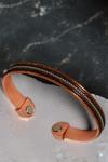 Kahverengi deri detayları ve ortasında yer alan küp şeritli bakır tasarımı ile göz alıcı bir görünüm sunar.