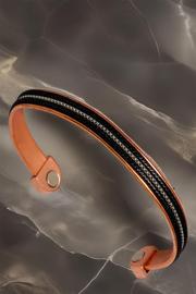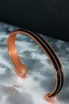 Osmanlı Gümüş Kadın Bakır Bileklik - Ortası Küp Şeritli Siyah Derili Bakır Bilezik Metal Kutuda