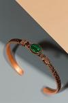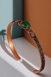 Osmanlı Gümüş Kadın Bakır Bileklik - Yeşil Akik Taşlı Otantik Model Yanı Desenli Bakır Bilezik