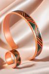 Osmanlı Gümüş Kadın Bakır Bileklik Yüzük Set - Kira Model Özel Baskı Metal Kutu Ve Kuvars Taşı