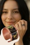 Osmanlı Gümüş Kadın Bakır Bileklik Yüzük Set - Mia Model Özel Baskı Metal Kutu Ve Kuvars Taşı