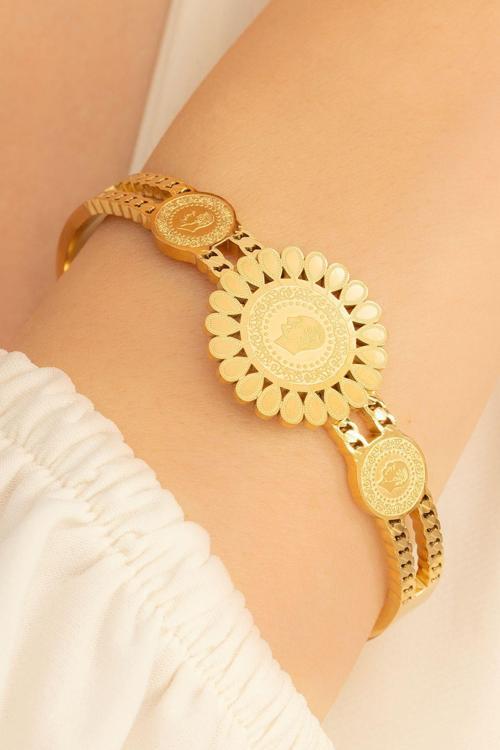 Çiçek desenli tasarımıyla feminen detayları bileklik tasarımına taşır ve zarif bir stil oluşturur