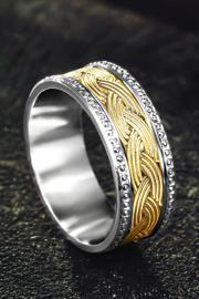 Osmanlı Gümüş Kadın Gümüş Alyans – Altın Kaplama Örgü Desenli Şık Ve Zarif Tasarım Kadın Yüzük