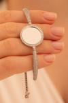 Osmanlı Gümüş Kadın Gümüş Bileklik - İsim Yazılabilir Yuvarlak Plaka Asansörlü Kadın Bileklik