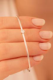 Osmanlı Gümüş Kadın Gümüş Bileklik - Kadın Kelepçe - Zirkon Taşlı Zarif Model İnce Kibar Kadın Bileklik