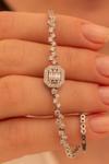 Baget taşlı zirkon süslemeleri, bilekliğe ışıltı ve göz alıcı bir görünüm kazandırır.