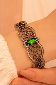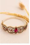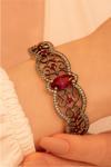 Osmanlı Gümüş Kadın Gümüş Bileklik - Yakut Ve Zirkon Taşlı Otantik Gümüş Kelepçe Bileklik