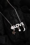 Osmanlı Gümüş Kadın Gümüş Kolye - Sevgililer Günü - Hediye - Zirkon Taşlı Love Yazılı Kalp Motifli Kadın Kolye