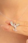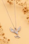 Zarif anka kuşu motifleriyle süslenmiş, göz alıcı bir tasarıma sahip gümüş kolye