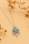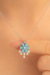 Turkuaz taşlarla süslenmiş çiçek motifleri, feminen ve zarif bir dokunuş katarken, her türlü kıyafetle uyum sağlar