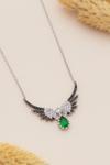Zirkon ve zümrüt taşlarla süslenmiş melek kanadı detayı, göz alıcı bir parlaklık ve estetik bir görünüm sağlar
