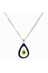 Zarif tasarımıyla dikkat çeken bu gümüş kolye, mavi damla modeli ve nazar boncuğu detayı ile göz alıcı bir aksesuar sunar