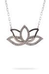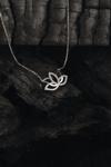 Zarif tasarımıyla dikkat çeken Lotus çiçeği motifli kolye, beyaz zirkon taşlarla süslenmiştir ve 925 ayar gümüşten üretilmiştir