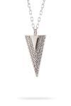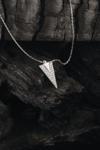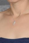 Zarif tasarımıyla dikkat çeken mızrak uçlu zirkon taşlı bayan kolye, gümüş materyalin asaletini ve zirkon taşların ışıltısını bir arada sunar