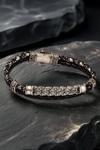 Osmanlı Gümüş Örgülü Siyah Deri Erkek Bileklik – Gümüş Motifli Antik Tasarım